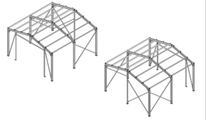 Montované haly s rozlohou do 50 m² – ideálne pre garáže, dielne, sklady, servisy či záhradné domčeky. Stavba je navrhnutá presne podľa potrieb, s dôrazom na funkčnosť, kvalitu a jednoduchú montáž.