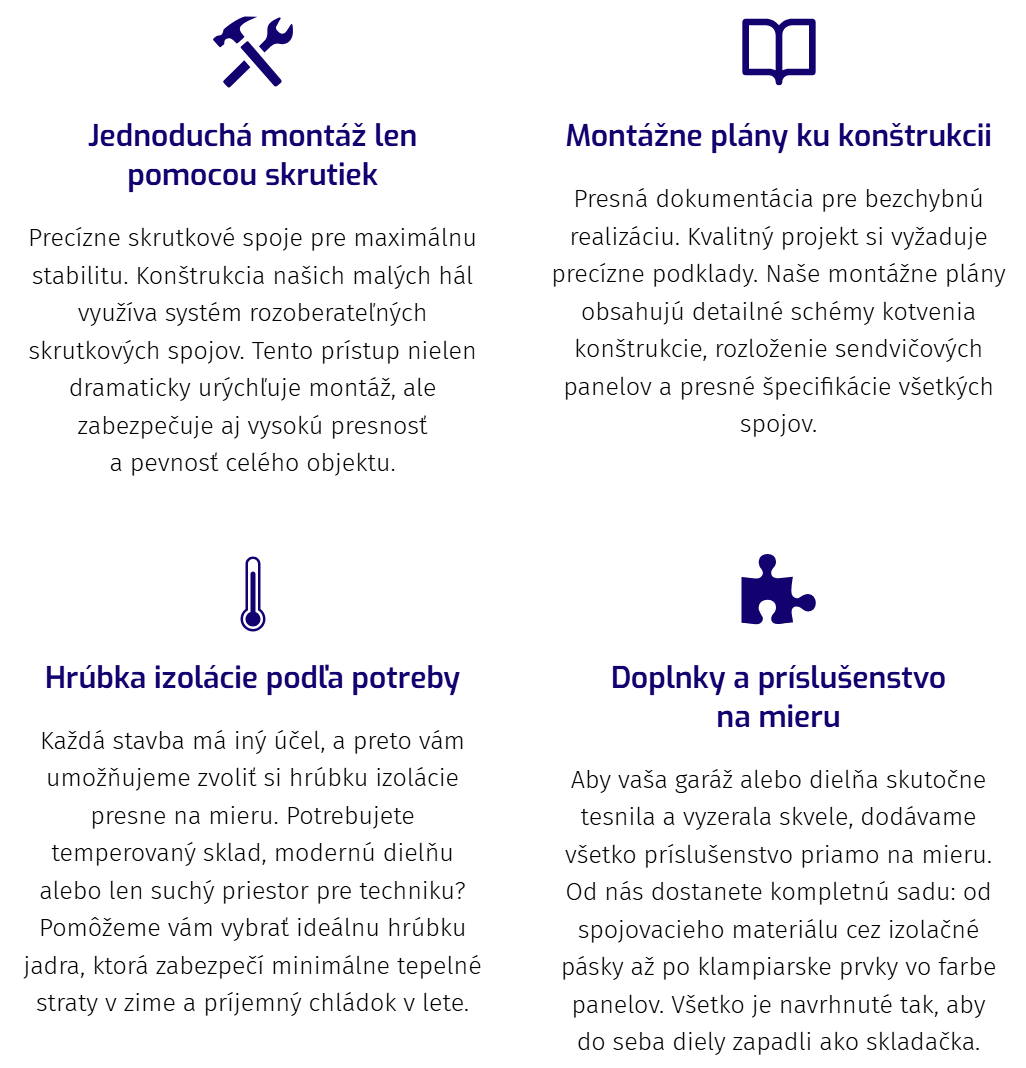Každý projekt obsahuje montážny návod, dopravu priamo na miesto a zákaznícku podporu od návrhu až po dokončenie stavby.